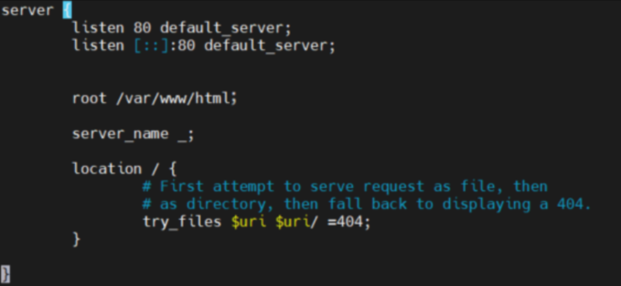$ sudo vim /etc/nginx/sites-available/default