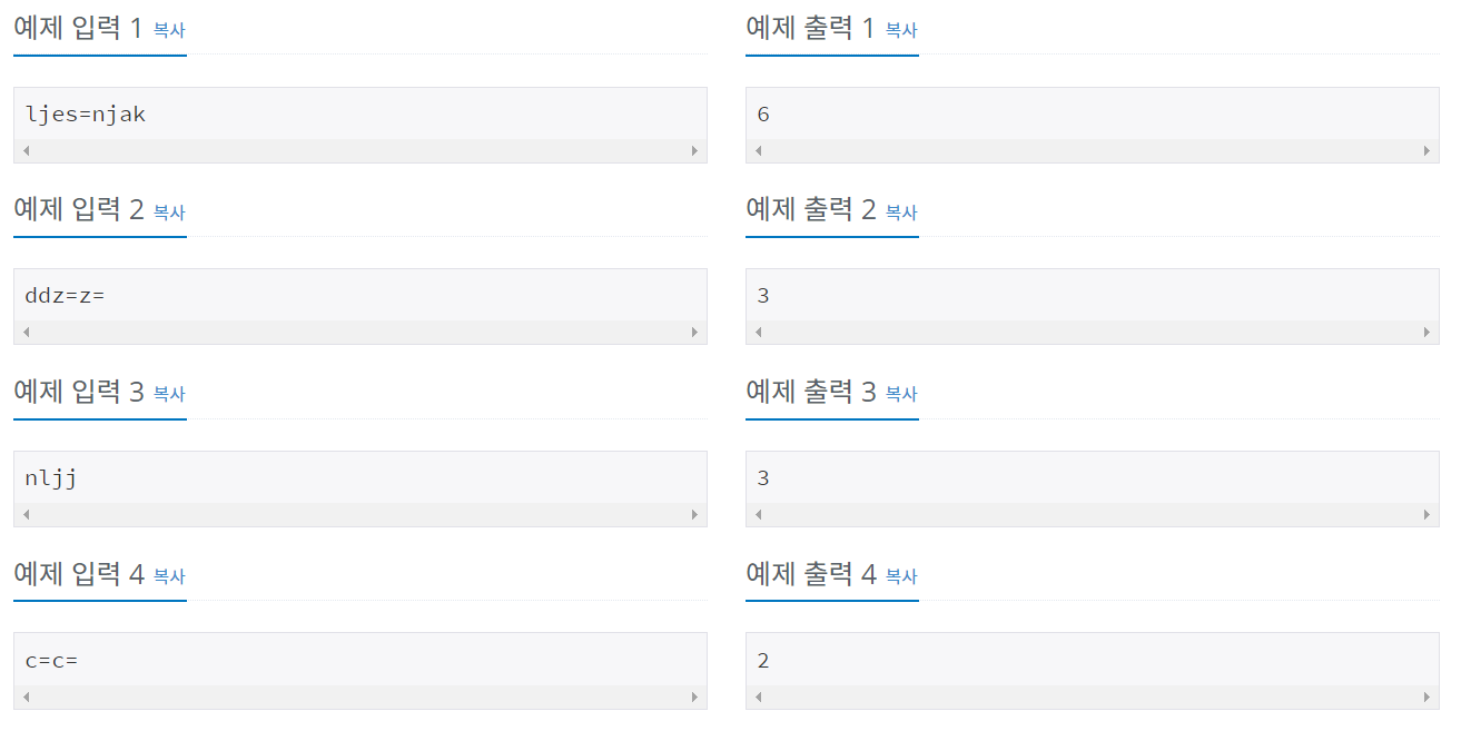 3) 모든 경우 ++을 해준다. (두 자리 글자는 마지막 글자 자리에 ++, 세 자리 글자도 마지막 글자 자리에 ++)