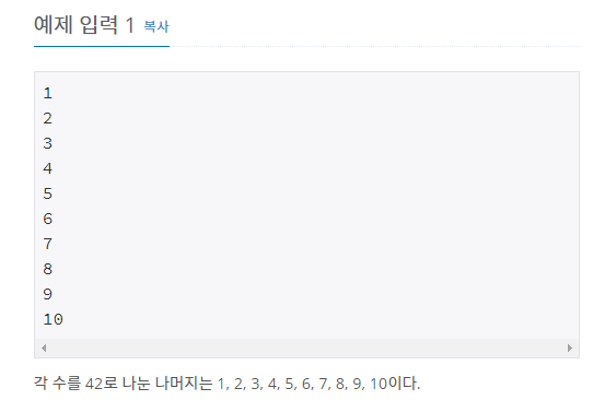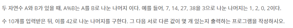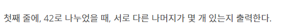 1) 42로 나눈 나머지를 구하여 해당 나머지를 인덱스로 갖는 배열을 ++한다.